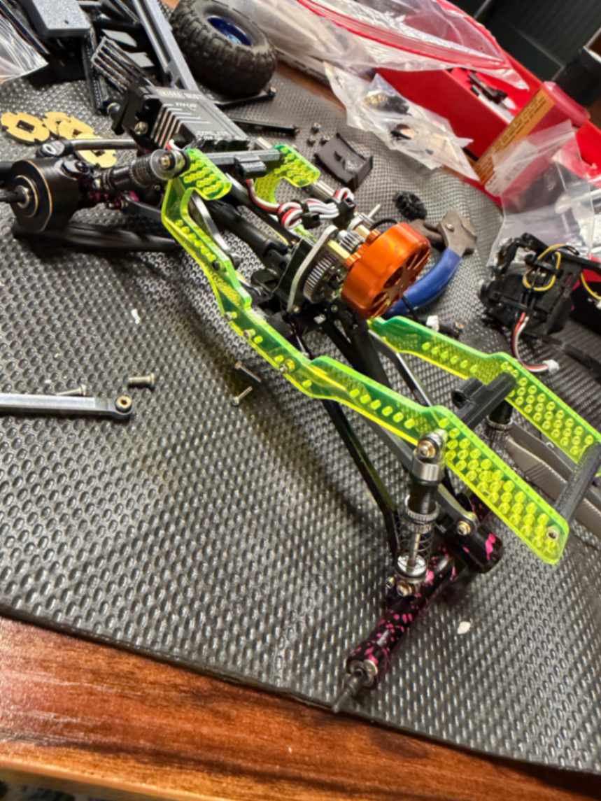 Stinky, the product of constant tinkering, 3D printing various parts, and the desire to have a reliable daily driver that I’m not concerned about beating up if it takes a tumble. Unpainted, low-quality 3D printed Datsun cab means if it breaks, I either glue it back together or print another! Get a Stinky in your life.